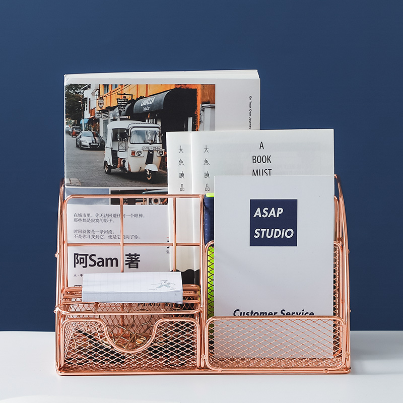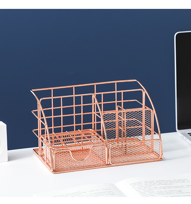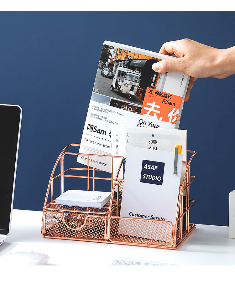 Подставка для документов и канцелярских принадлежностей хорошо подойдет для рабочего стола и не займет много места. Все необходимые канцелярские принадлежности всегда будут под рукой. Выполнена из прочного металла. Предназначенна для визиток, канцелярских принадлежностей, докутентов, листов для записей и Т.Д. Размер: 22.5X14X12.5см.