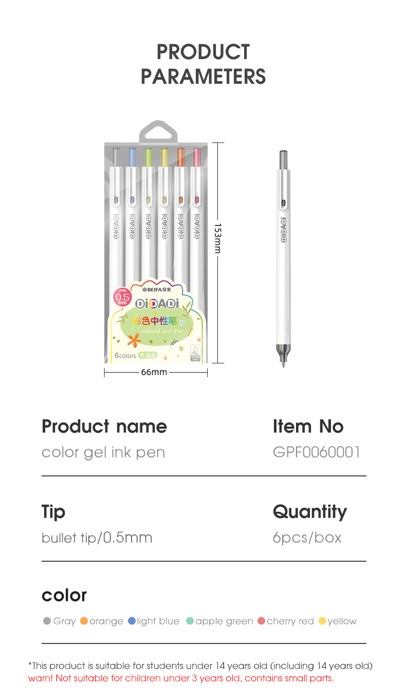 Гелевая ручка автоматическая неоновые цвета BEIFA GPF0060001 “DIDADI”