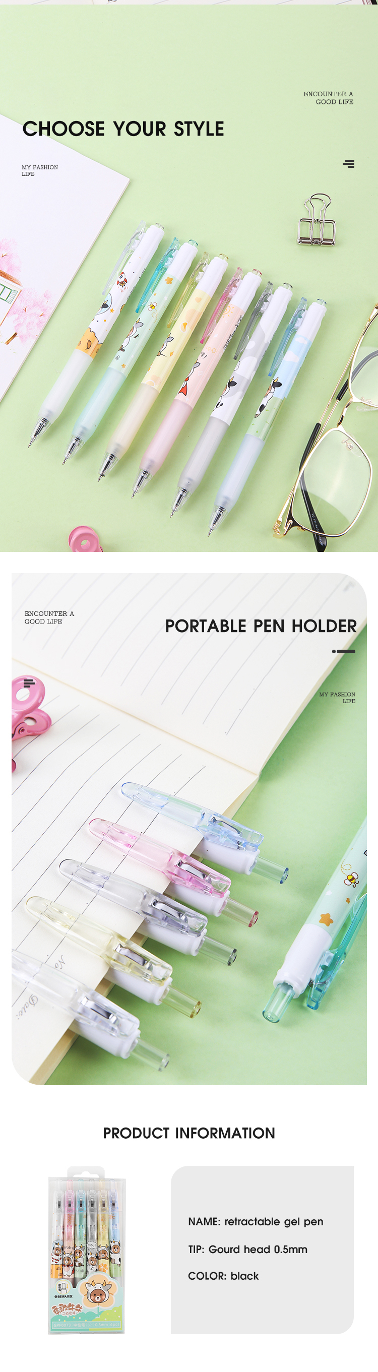 Набор гелевых ручек автоматические BEIFA GPF0073001 0.5мм черные чернила ПЭТ коробка 6шт/упаковка