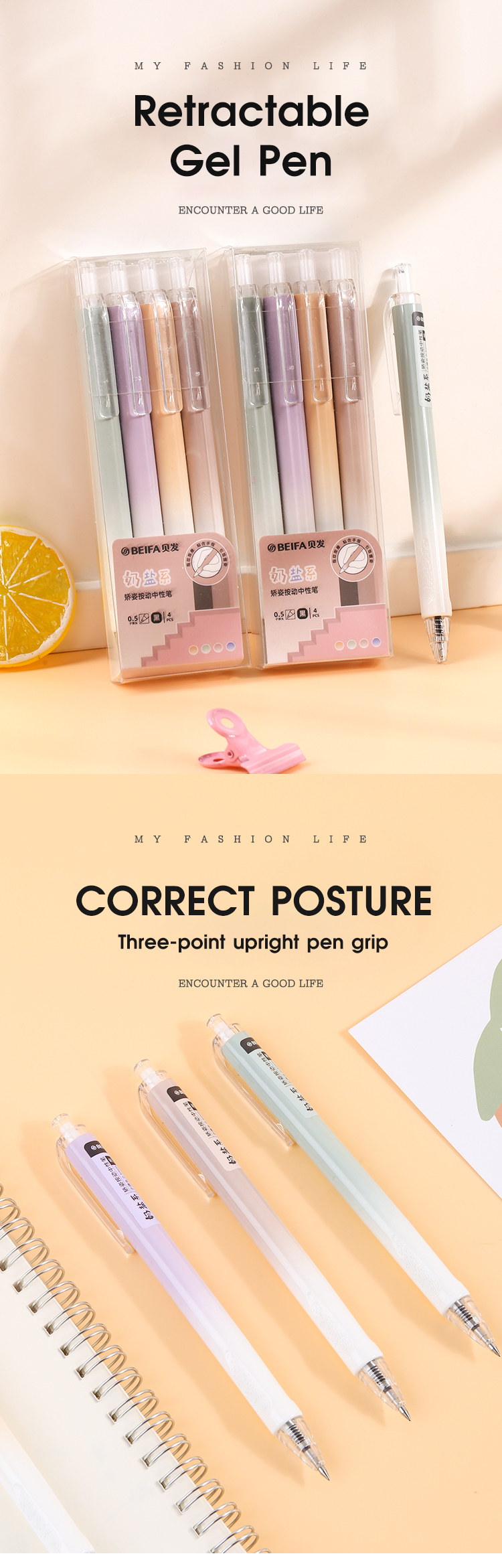 Набор гелевых ручек автоматические BEIFA GPF0089001 0.5мм черные чернила ПЭТ коробка 4шт/упаковка