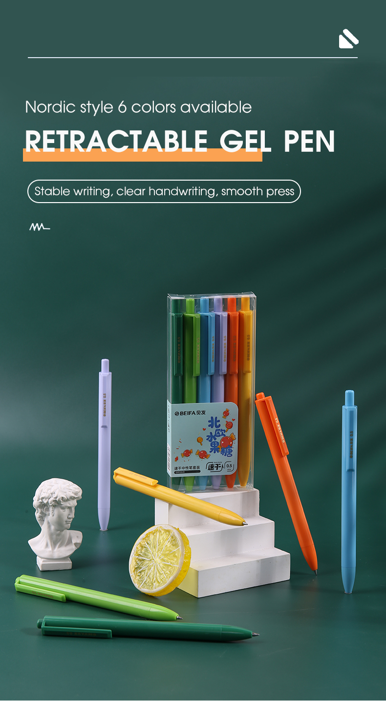 Набор гелевых ручек автоматические BEIFA GPF0049001 0.5мм черные чернила ПЭТ коробка 6шт/упаковка