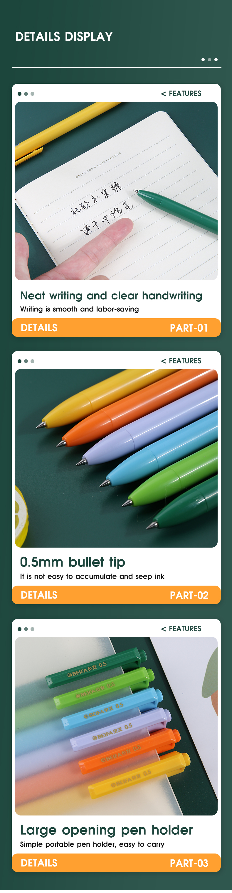 1. Ключевые спецификации: стабильная письма, четкий порчек, удобно нажимать, клип для удобства ношения с собой