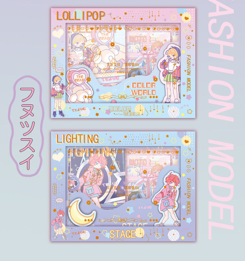 Подарочный набор BEIFA NBF0013002 Тетдадь с бумажной обложкой на магнитной затежке, открытка, декоративный скотч