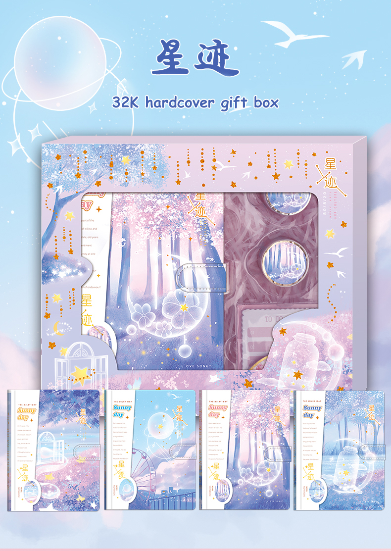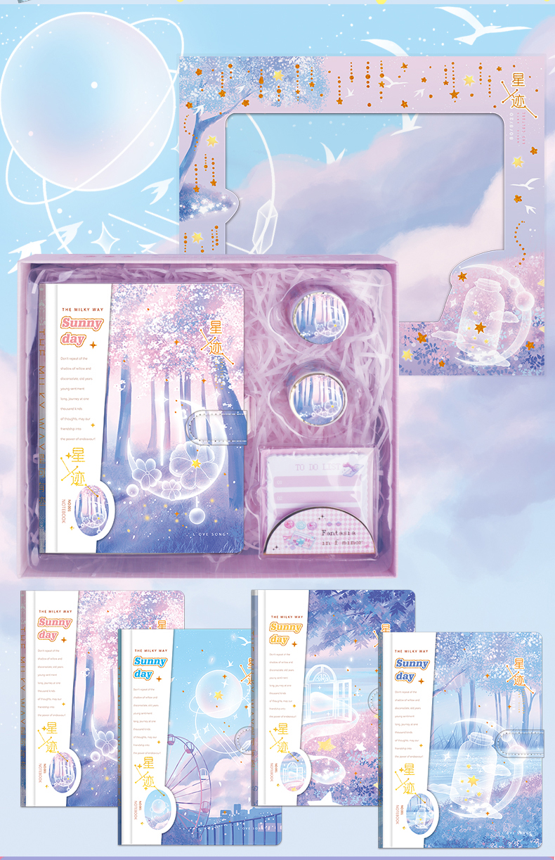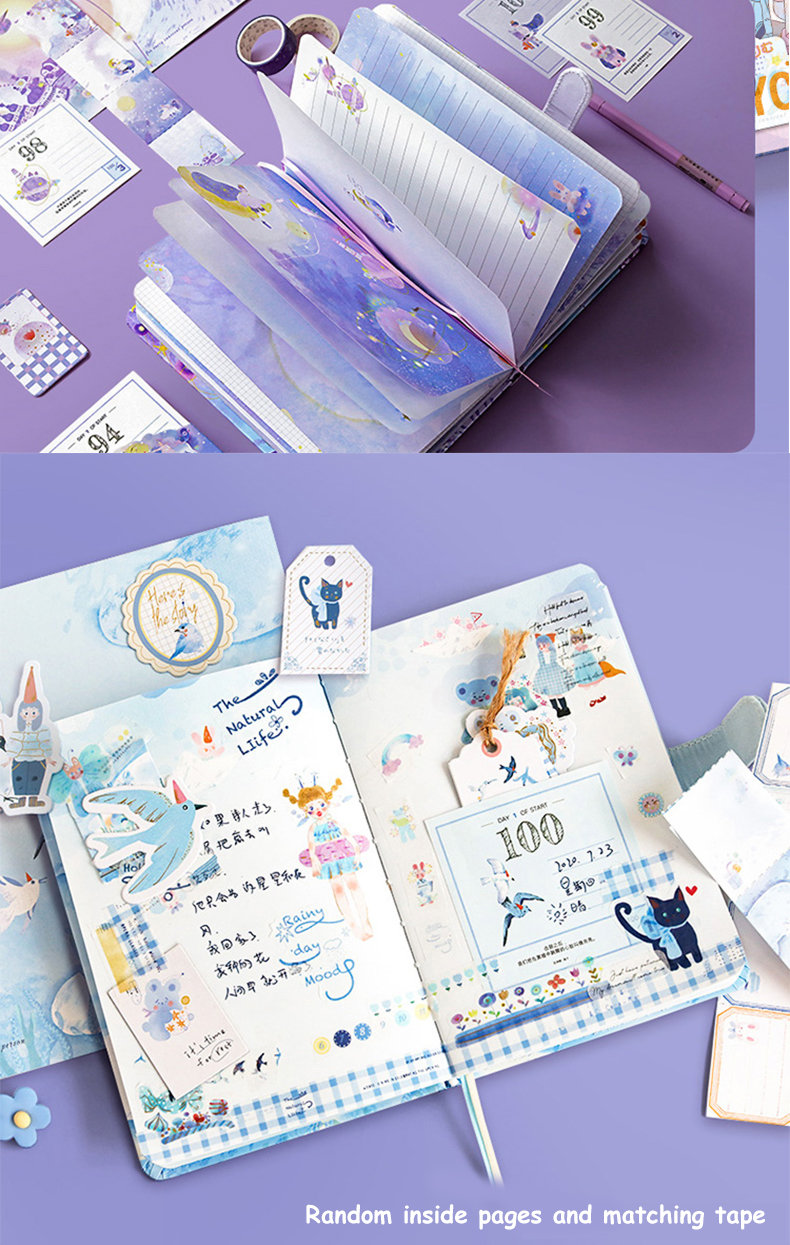 Подарочный набор BEIFA NBF0015001 Тетдадь с бумажной обложкой на магнитной затежке, открытка, декоративный скотч, стикеры