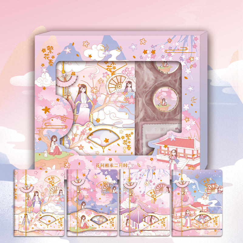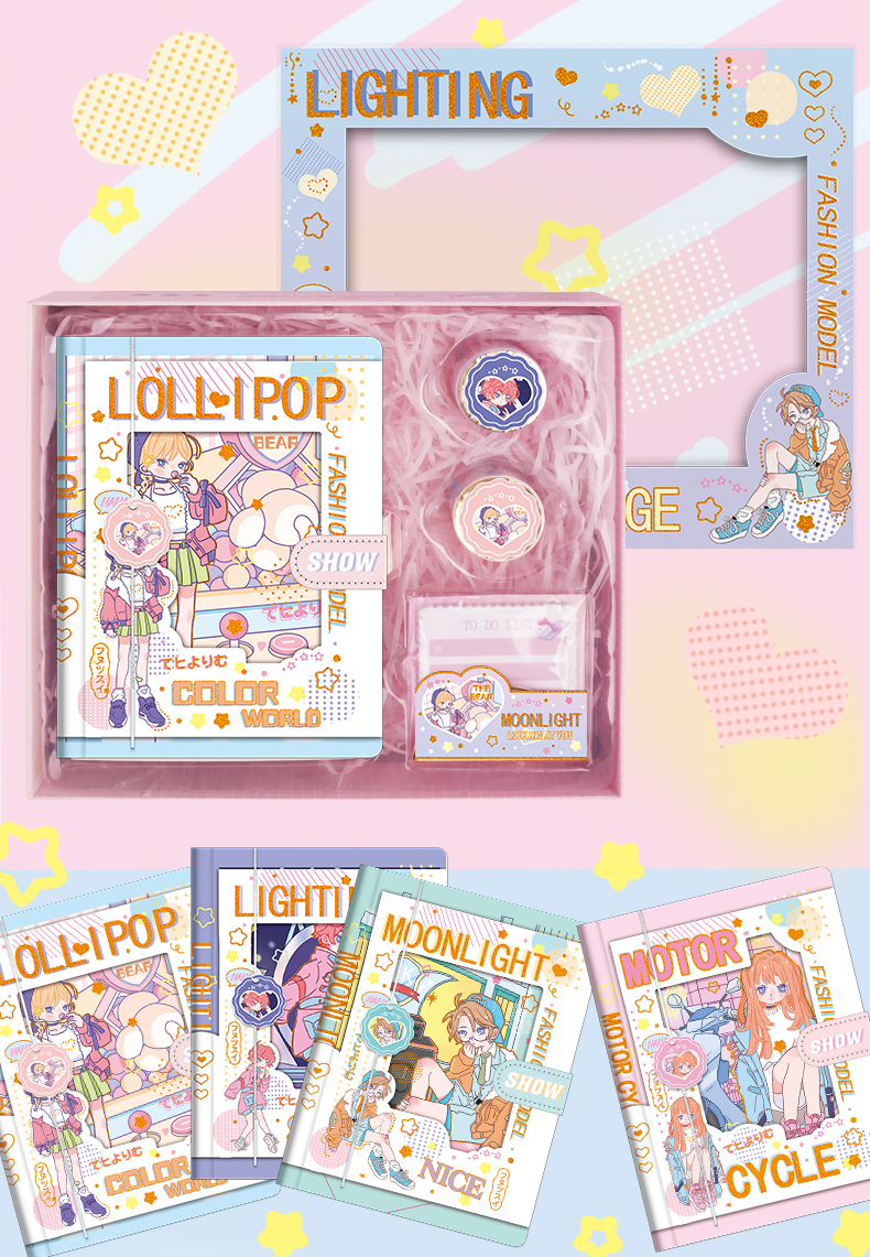 Подарочный набор BEIFA NBF0015002 Тетдадь с бумажной обложкой на магнитной затежке, открытка, декоративный скотч, стикеры