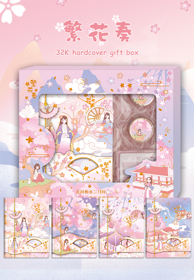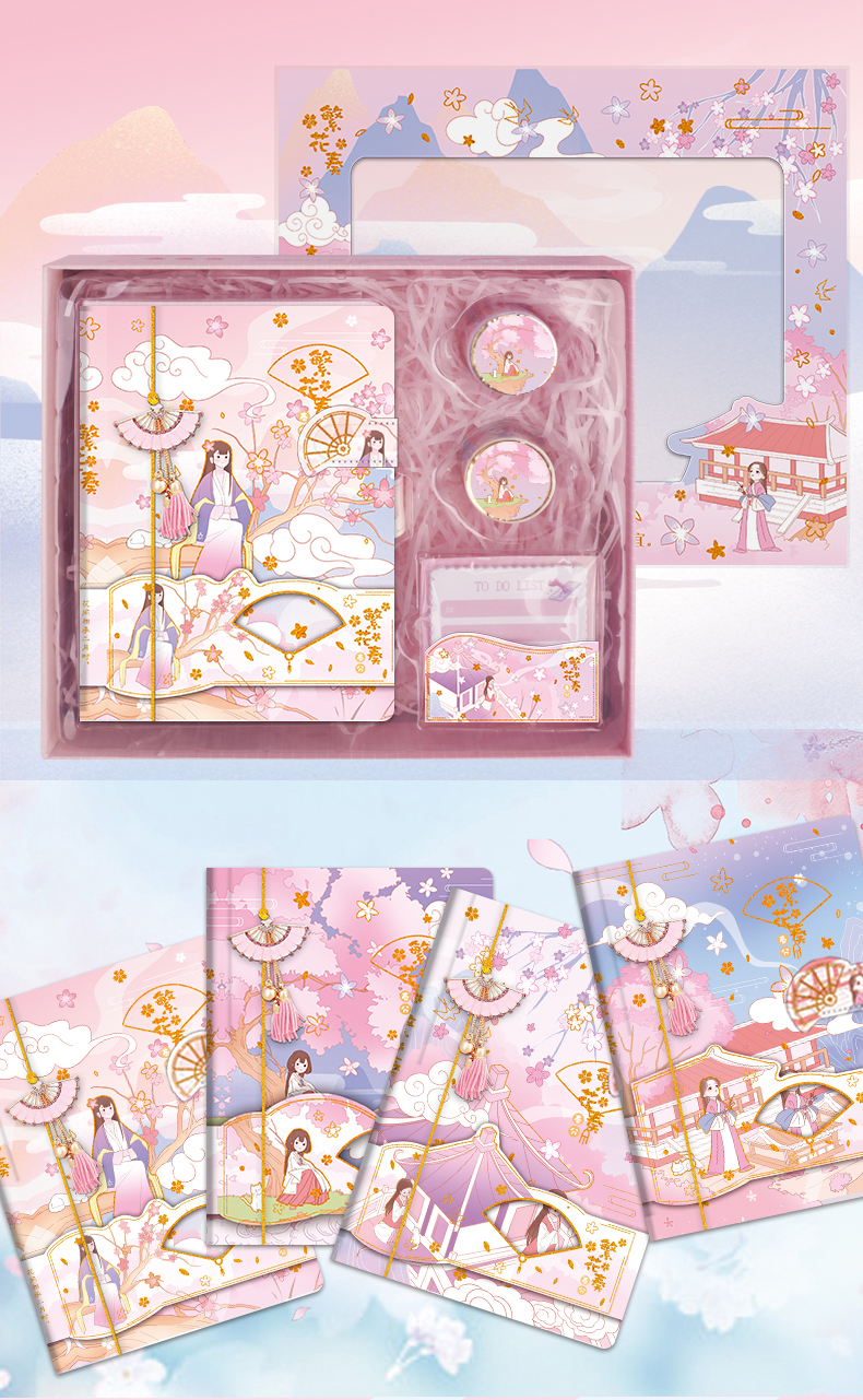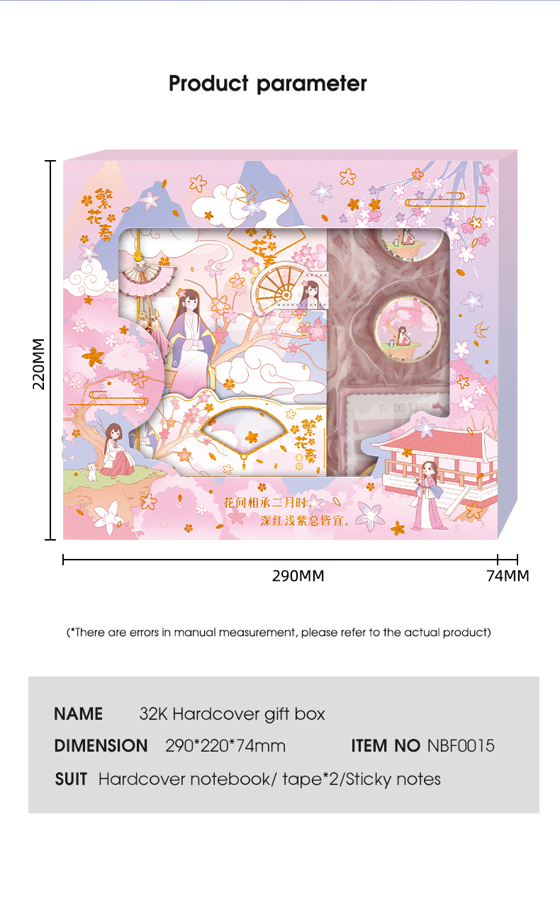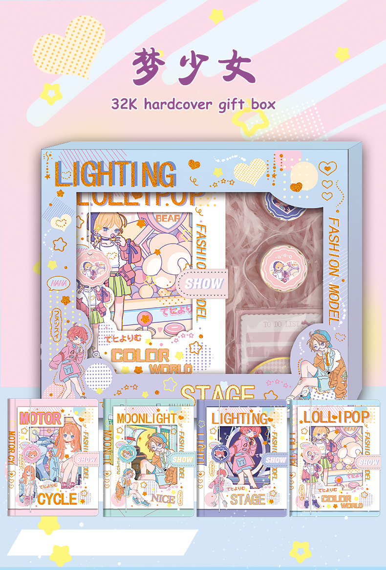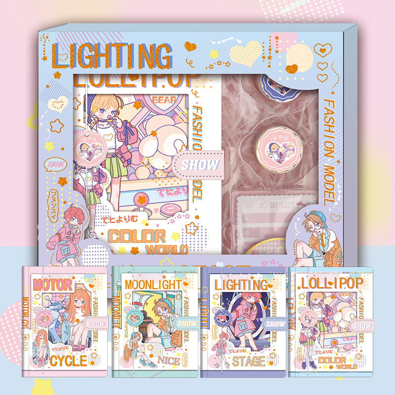 Подарочный набор BEIFA NBF0015003 Тетдадь с бумажной обложкой на магнитной затежке, открытка, декоративный скотч, стикеры
