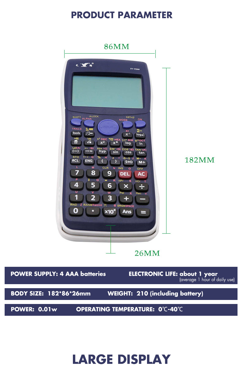 Графический калькулятор BEIFA BF-TX800 питание от батарейки 18.2*8.6*2.6см 2800 фнукций цветная коробка синий
