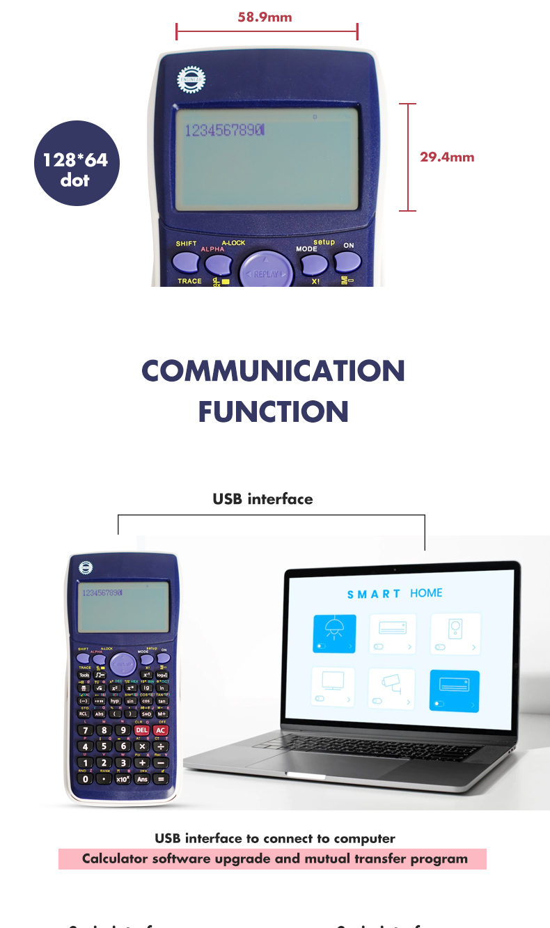 4. 64 КБ оперативная память, USB-интерфейс для подключения между компьютером и калькулятором.