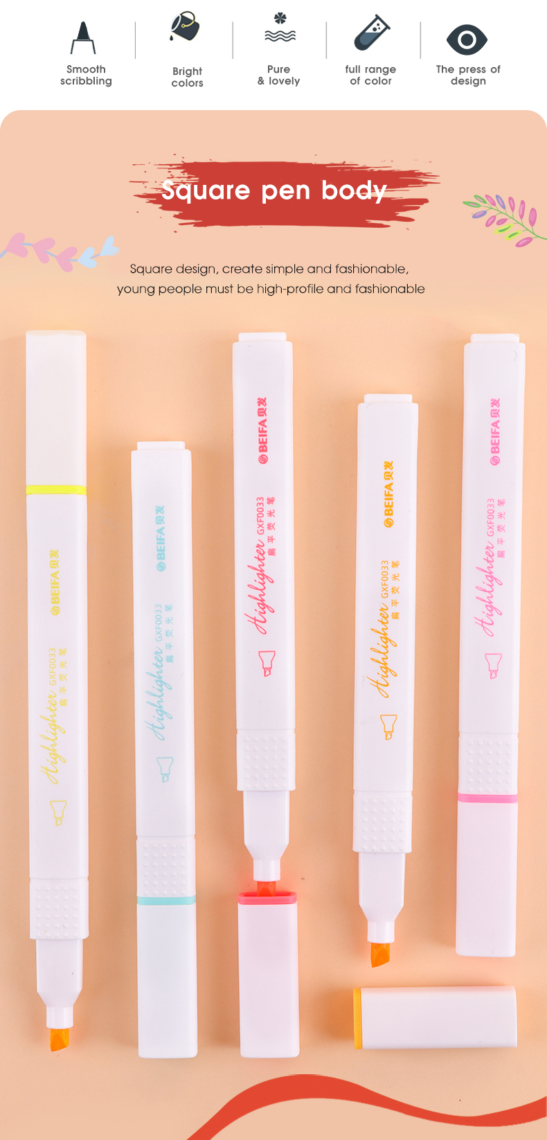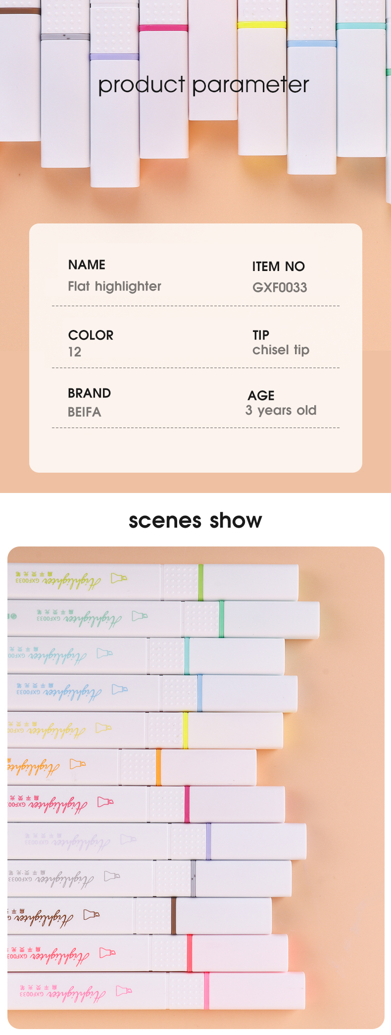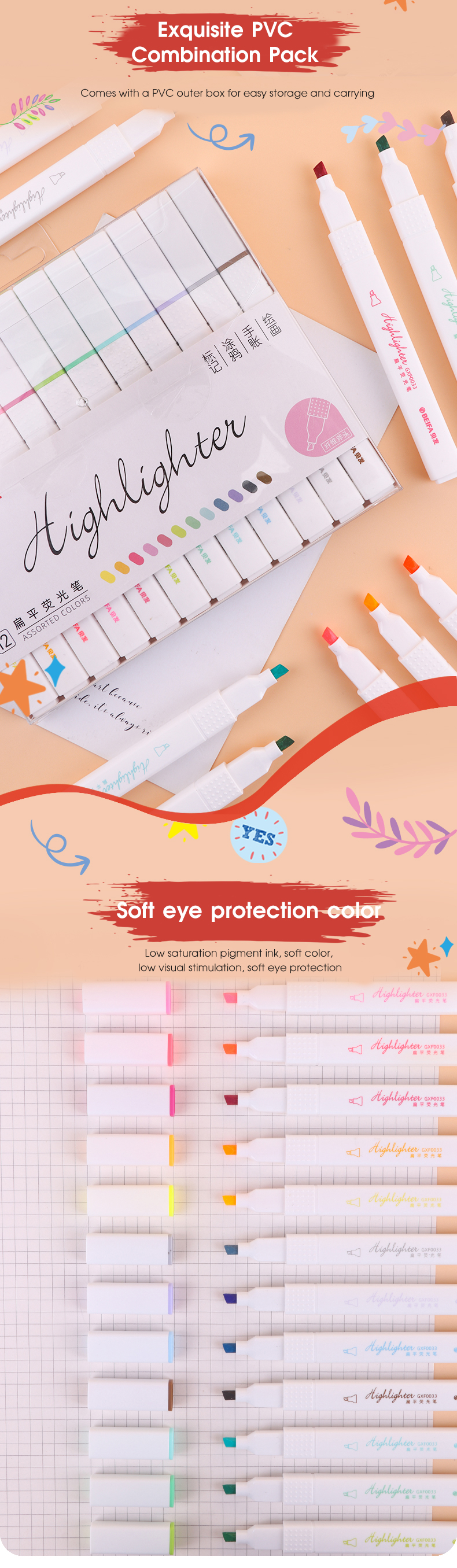 Набор текстовыделителей BEIFA GXF0033001 12цв ПЭТ коробка 12шт/упаковка