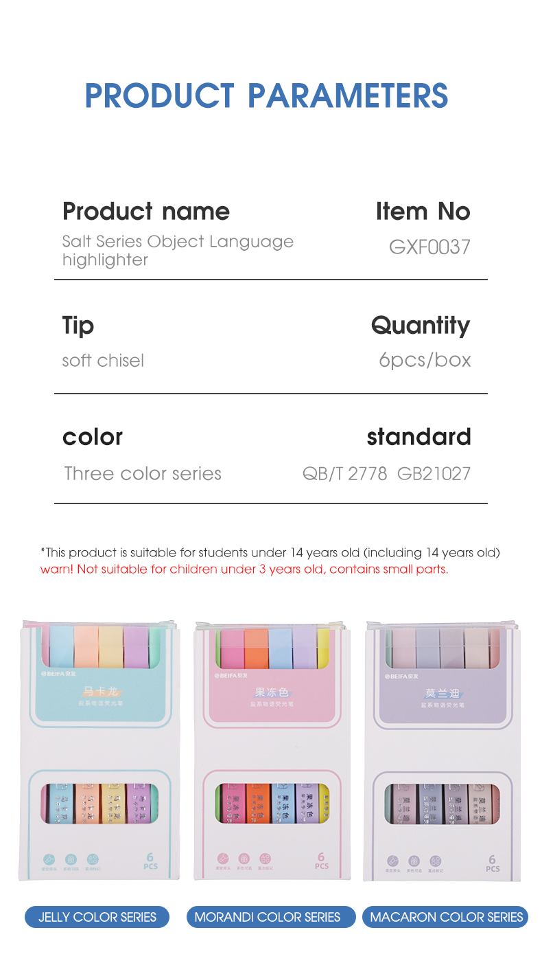 Набор текстовыделителей BEIFA GXF0037003 6цв цветная коробка 6шт/упаковка