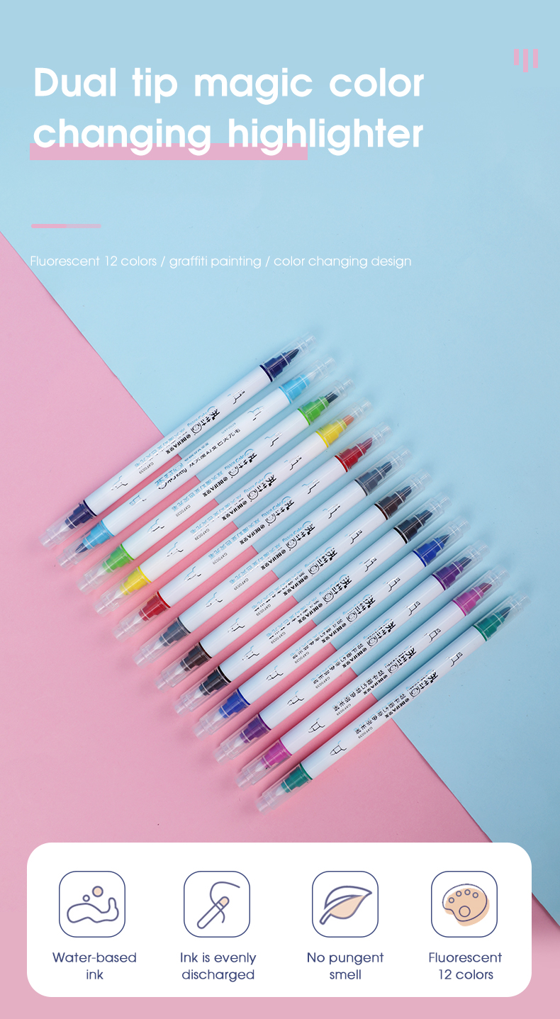 Набор текстовыделителей меняющие цвет BEIFA GXF0039001 12цв ПЭТ коробка 12шт/упаковка