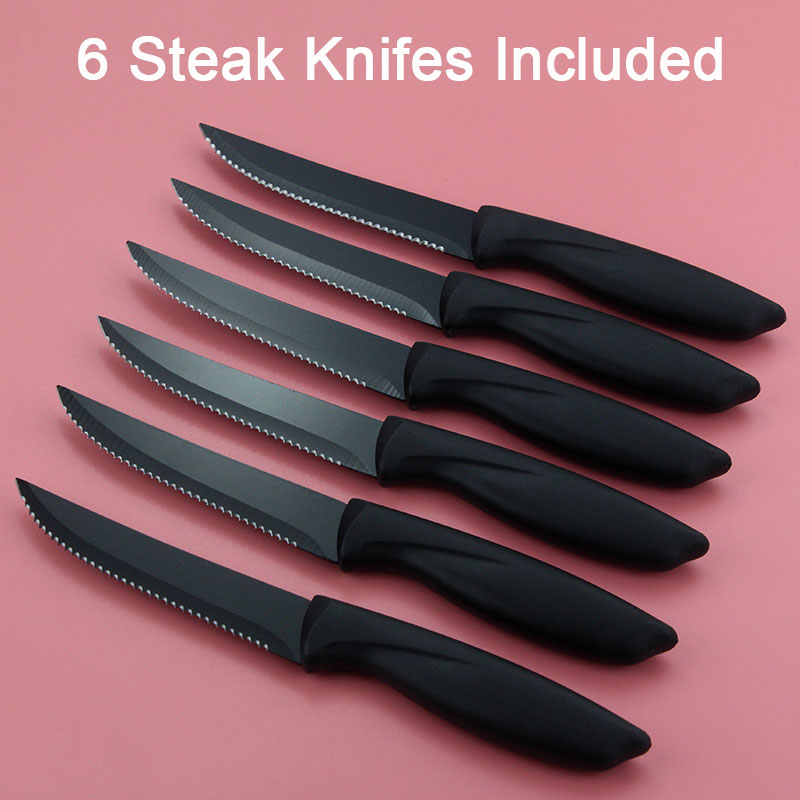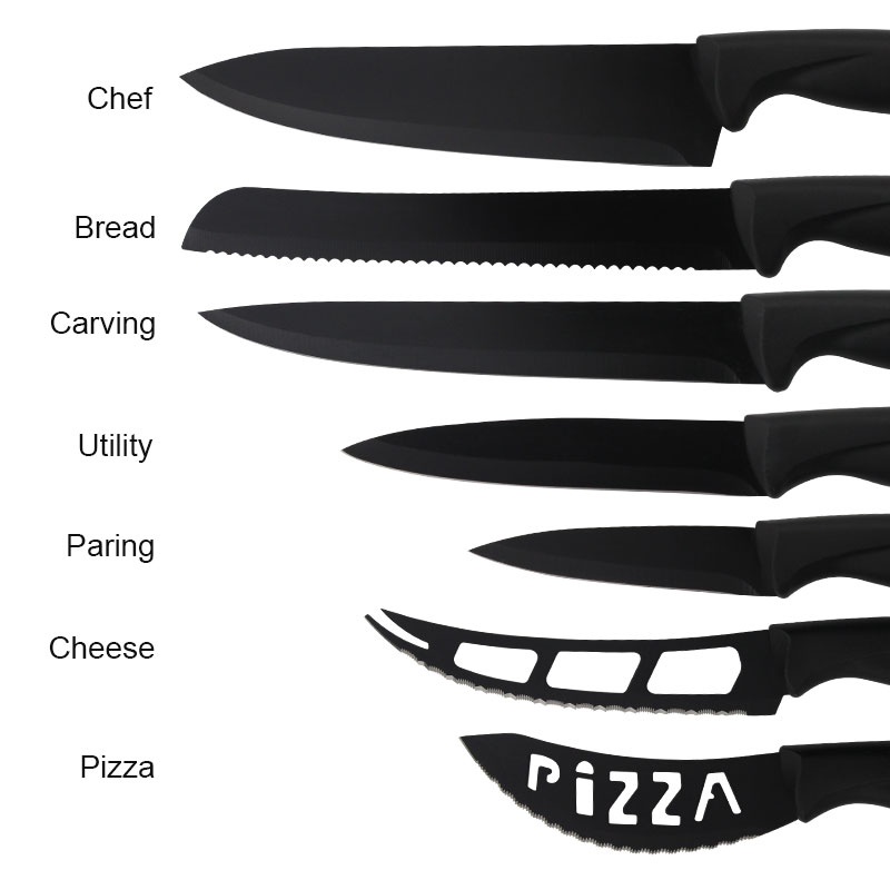 Материал: Лезвие: 3Cr13 с Антипригарным покрытием Ручка: PP Точилка: ABS+430 Ножницы: PP+2CR13 Овощечистка: PP+430SS+2CR13 Блок: Акрил |