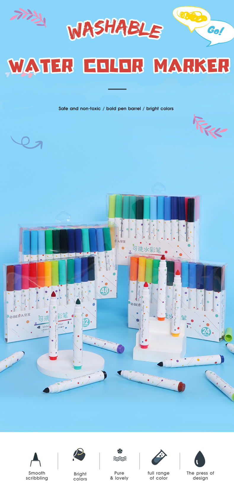 Фломастеры смываемые чернила BEIFA GSF0015001 48цв ПЭТ коробка