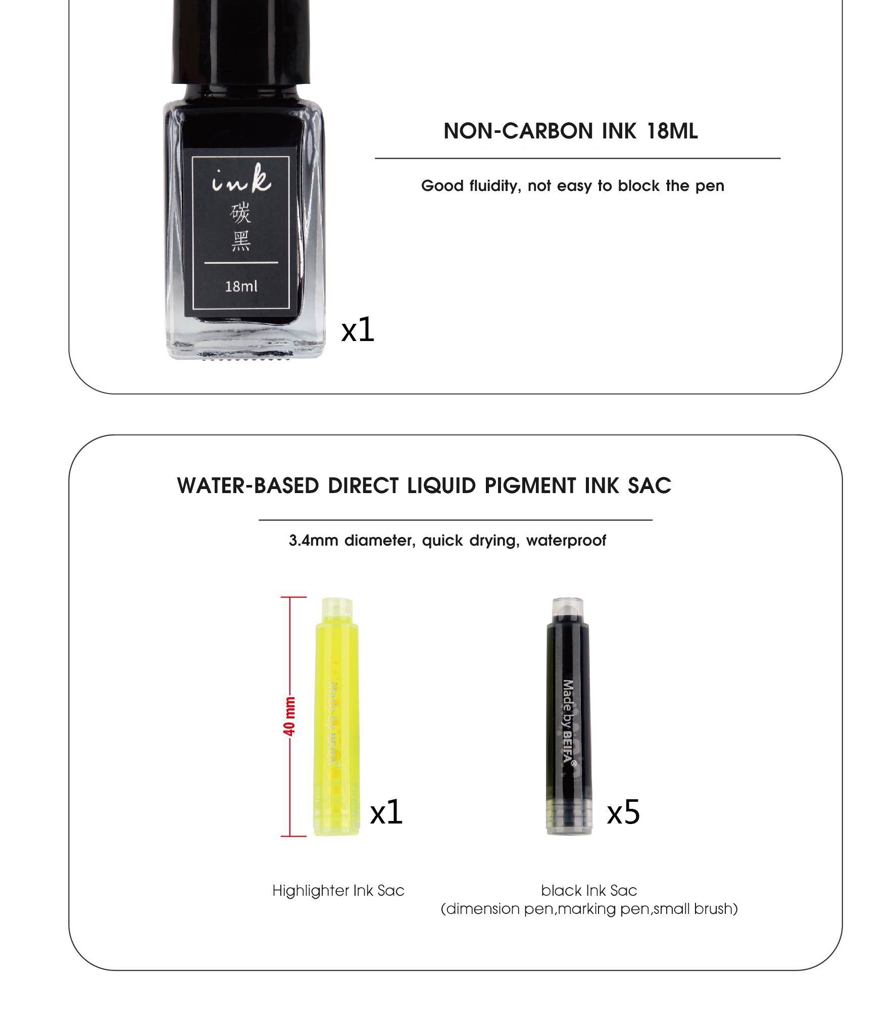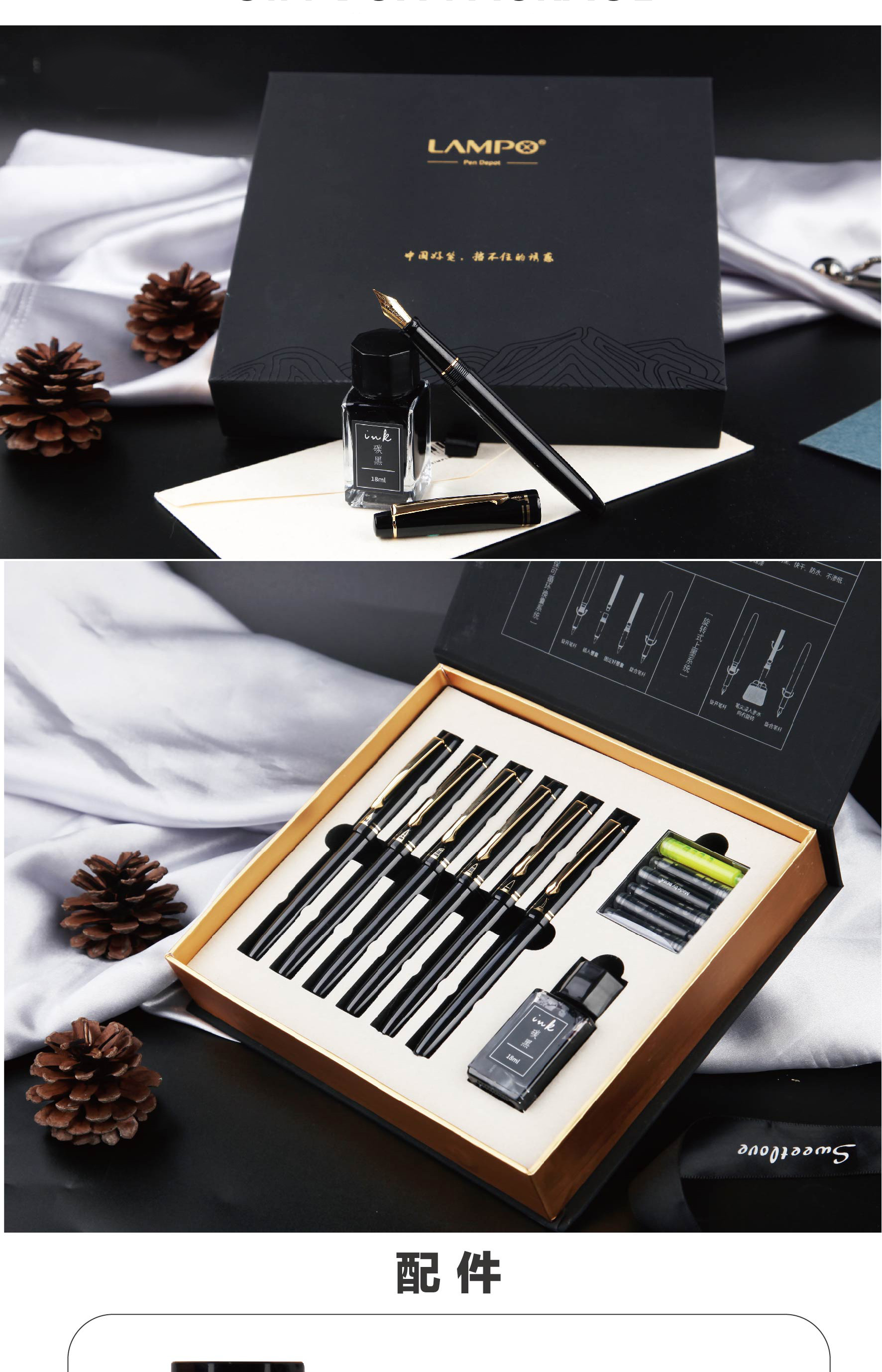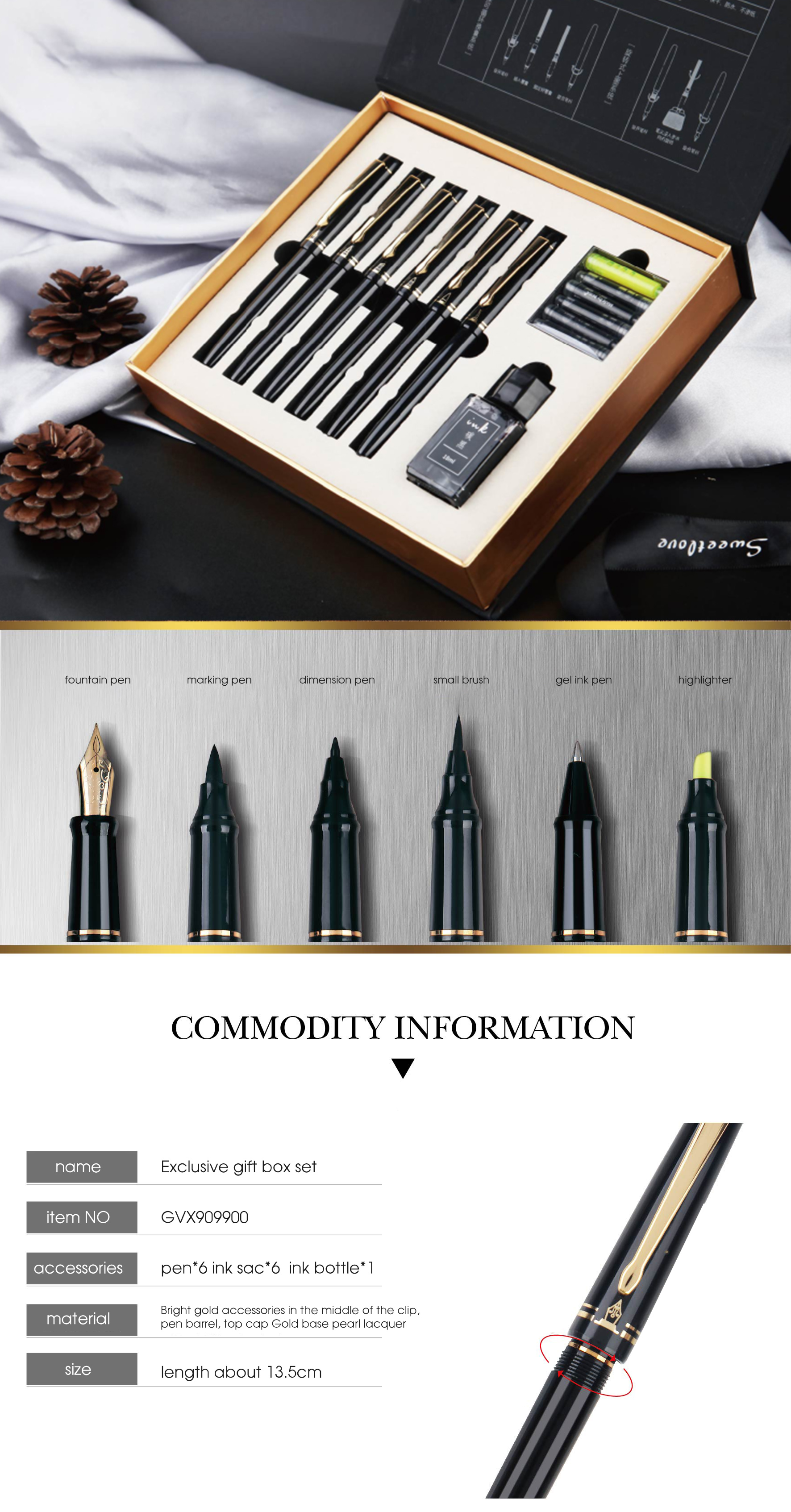 Набор ручек подарочный 6 в 1 BEIFA GVX909900 в комплекте: 6*ручек, 6*картрижди, 1*чернила