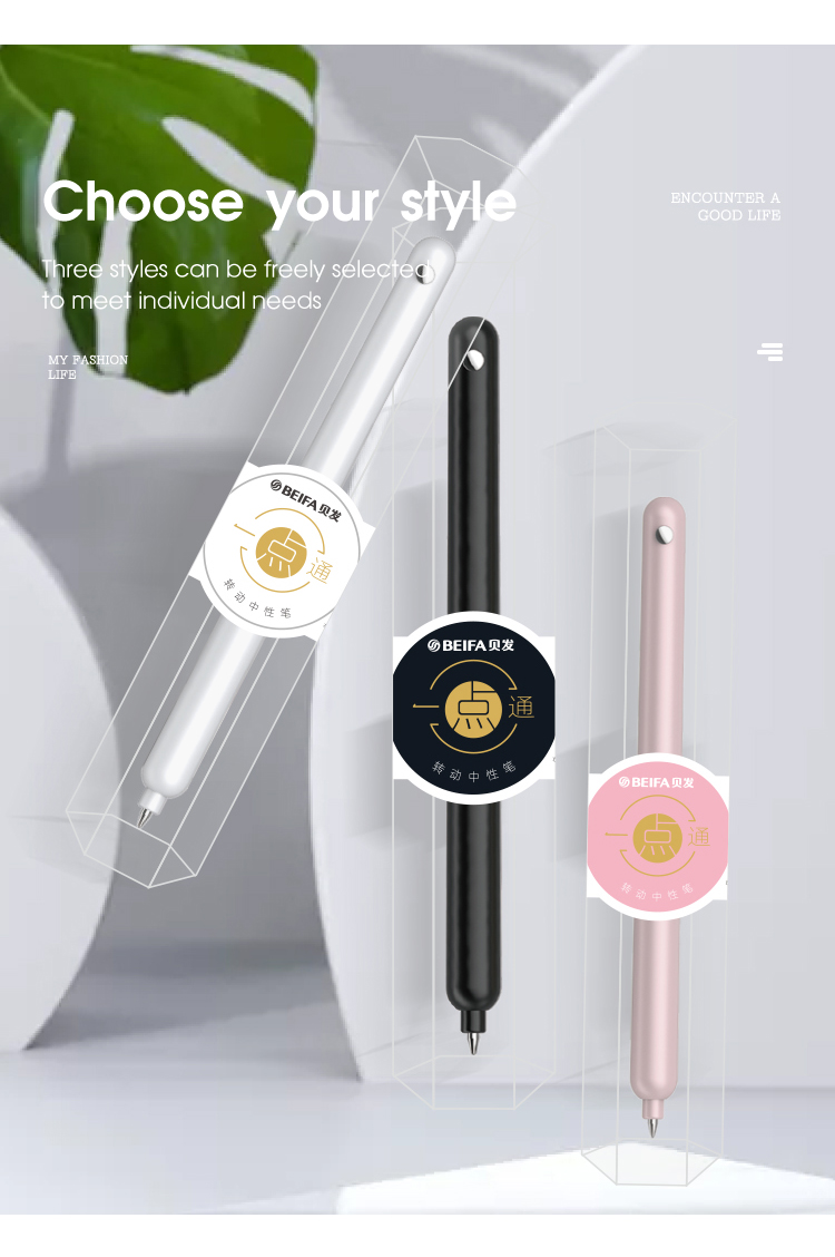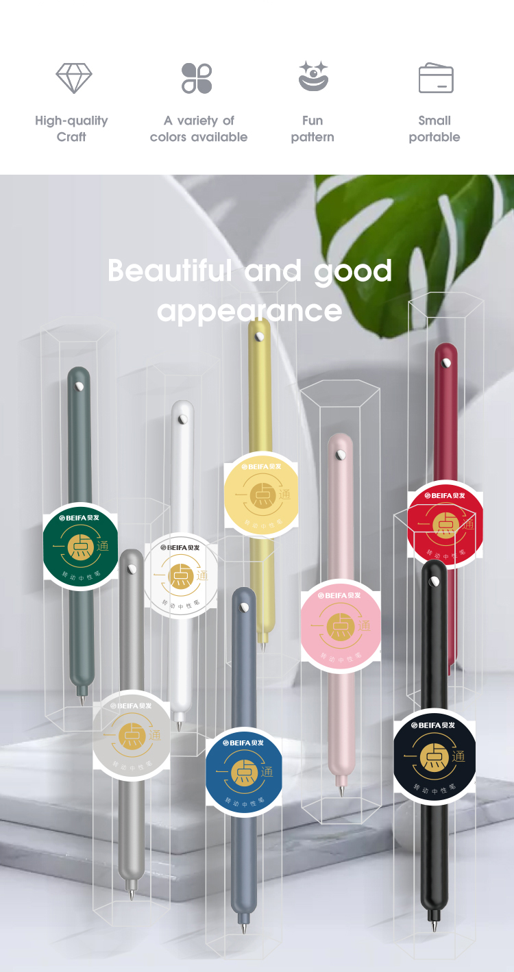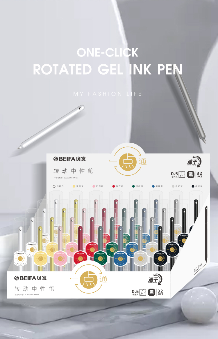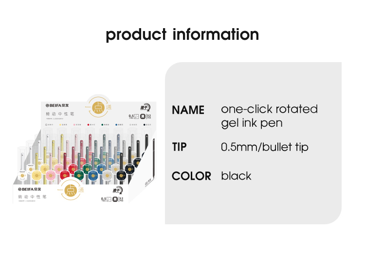 Одно-нажатие гелевая ручка BEIFA GPF0077001 поворотная металлический корпус 0.5мм черные чернила ПЭТ коробка