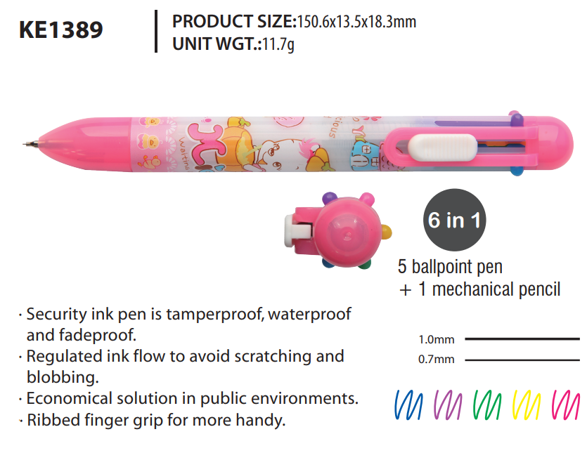 Ручка шариковая автоматическая+механический карандаш BEIFA KE1389 0.7/1.0мм 5цв в 1