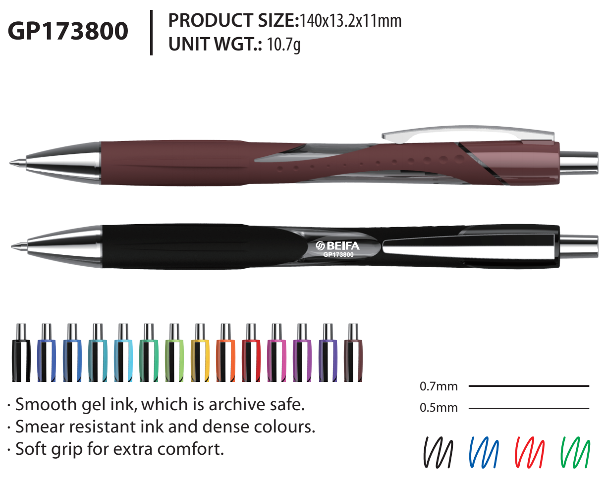 Ручка гелевая автоматическая BEIFA GP173800 0.5/0.7мм