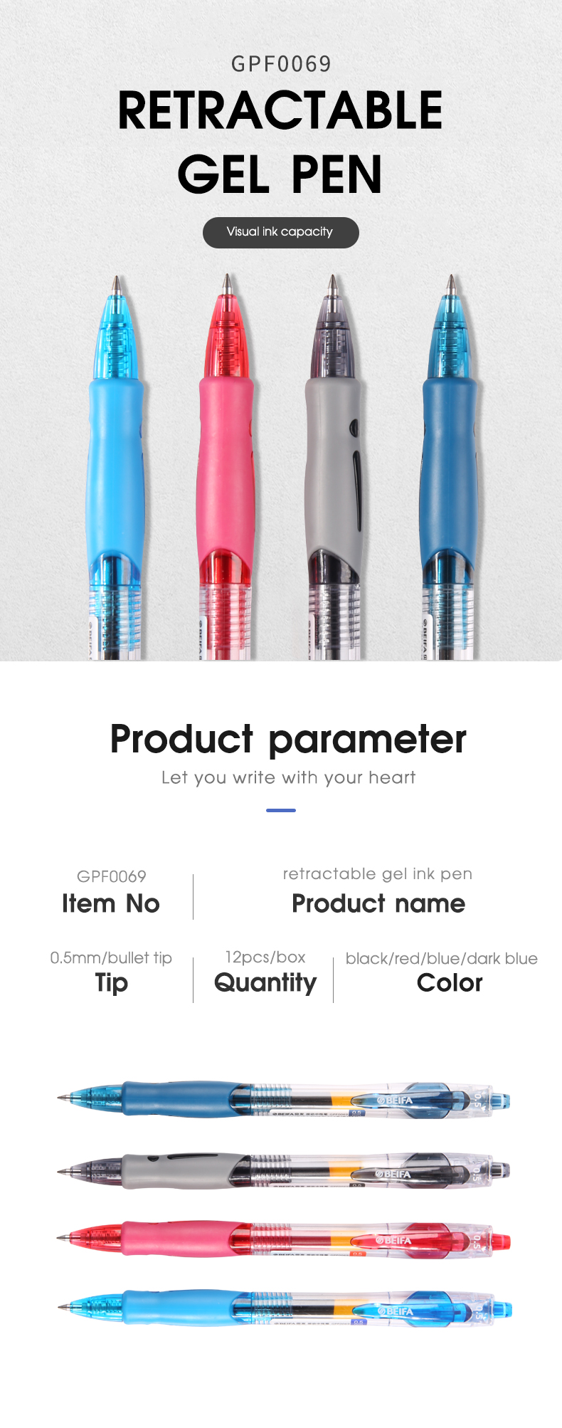 Ручка гелевая автоматическая BEIFA GPF0069002 0.5мм красные чернила цветная упаковка