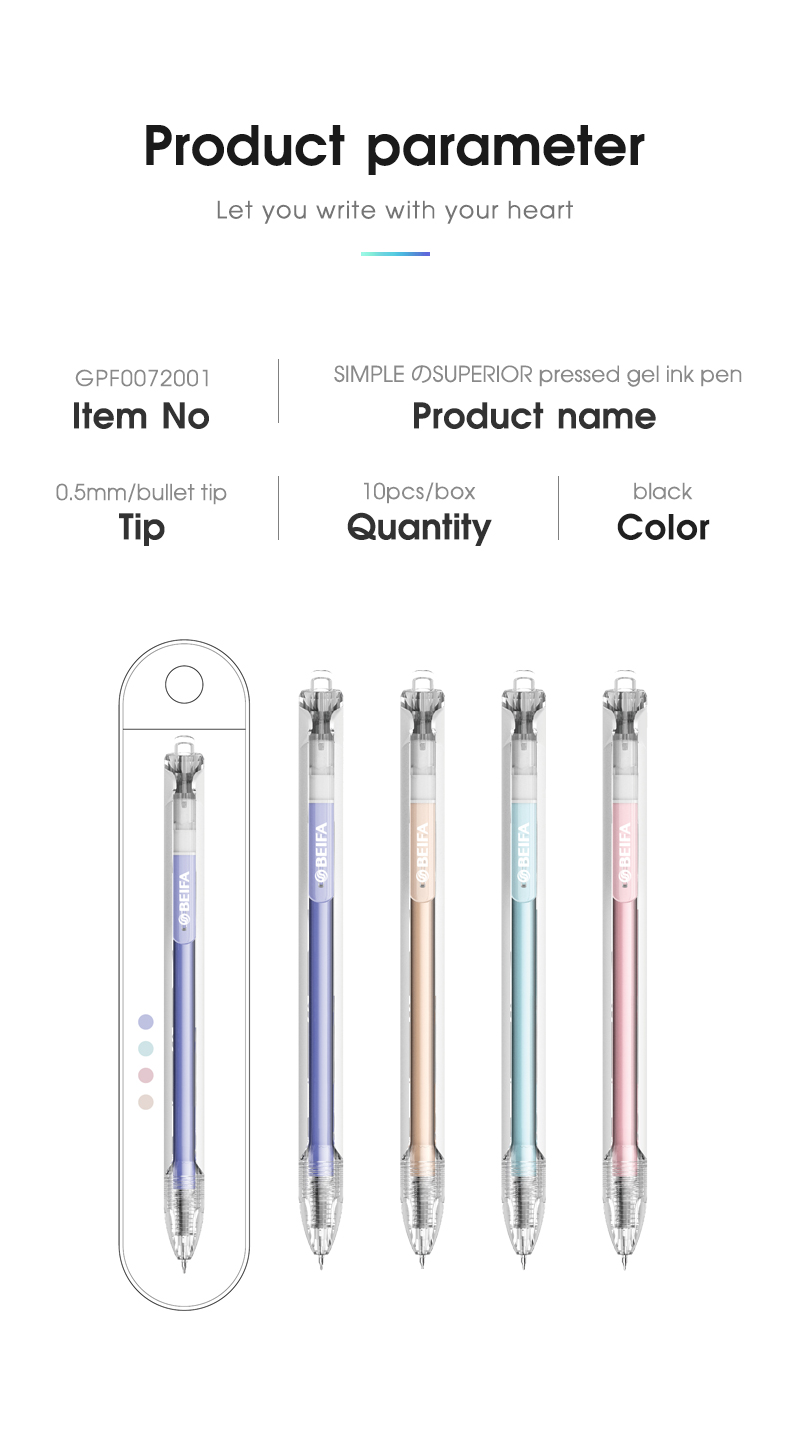 Ручка гелевая автоматическая BEIFA GPF0072001 0.5мм черные чернила цветная коробка