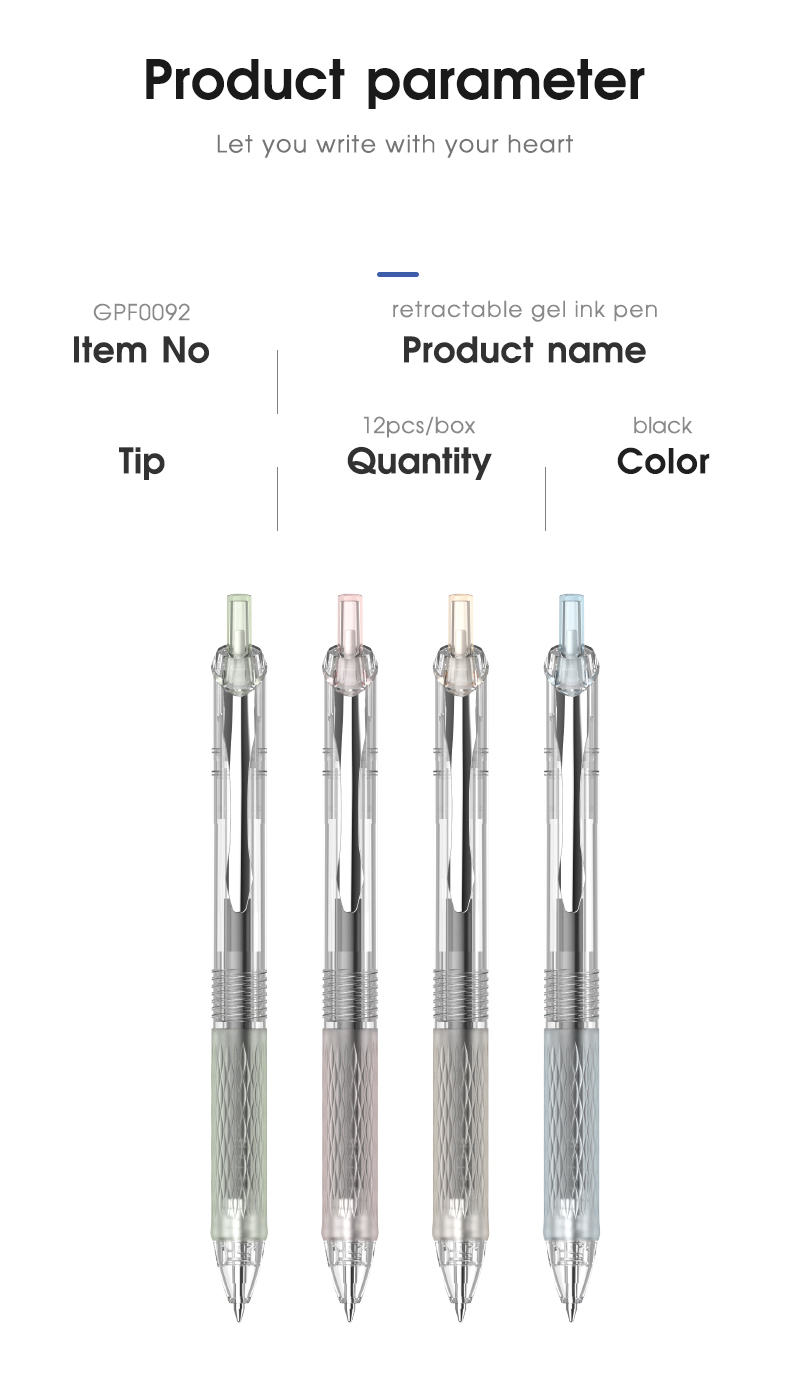 1. Ключевые спецификации: легкое и мягкое письмо, износостойкий корпус, металлический клип для удобства ношения с собой