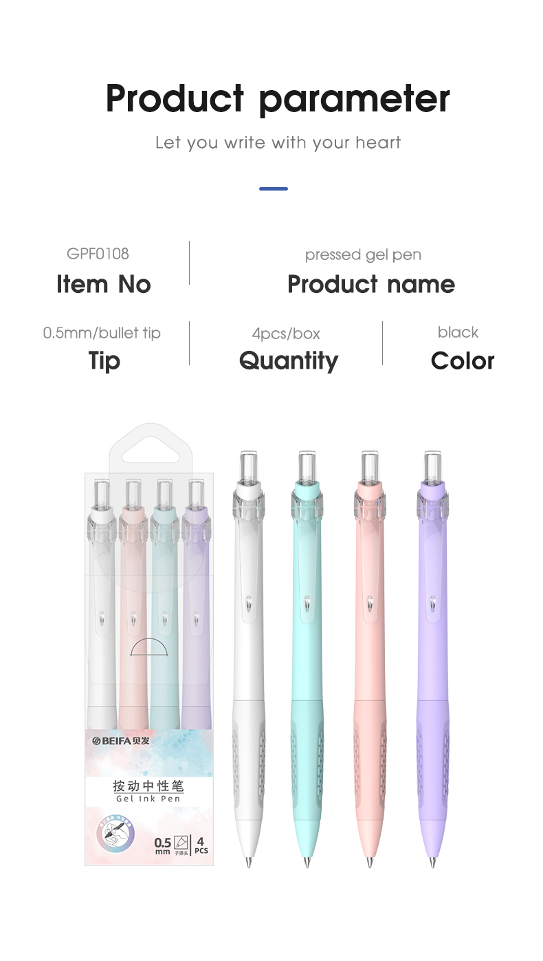 Набор гелевых ручек автоматические BEIFA GPF0108001 0.5мм черные чернила ПЭТ коробка 4шт/упаковка