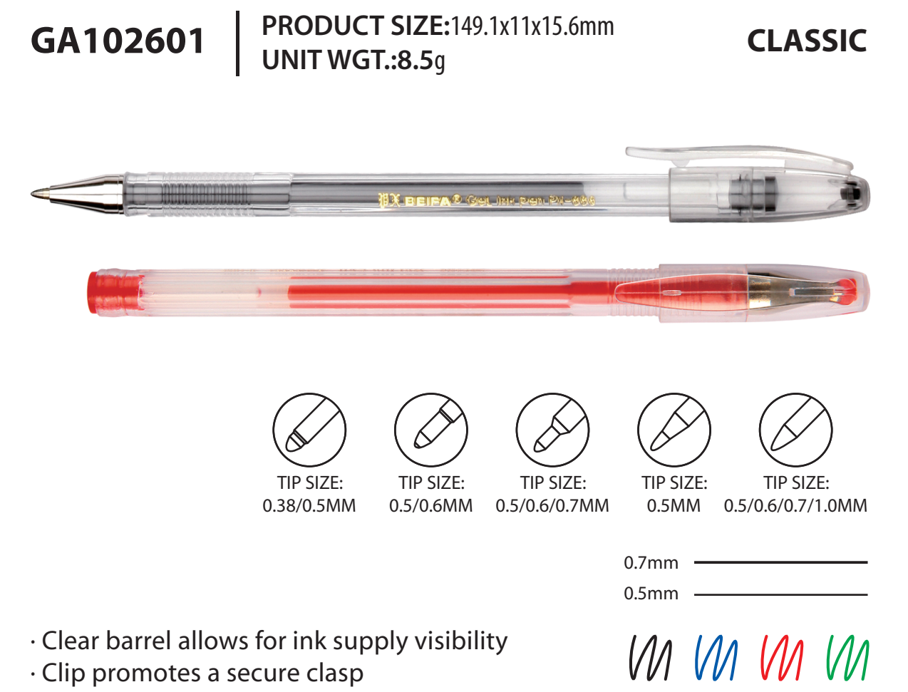 Ручка гелевая BEIFA GA102601 0.5/0.7мм