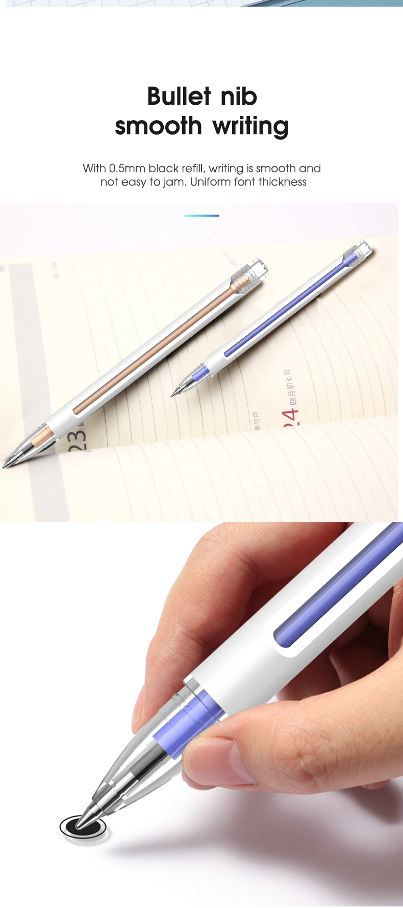 1. Ключевые спецификации: двухцветное литье пластмасс, легко носить с собой, легкое и мягкое письмо
