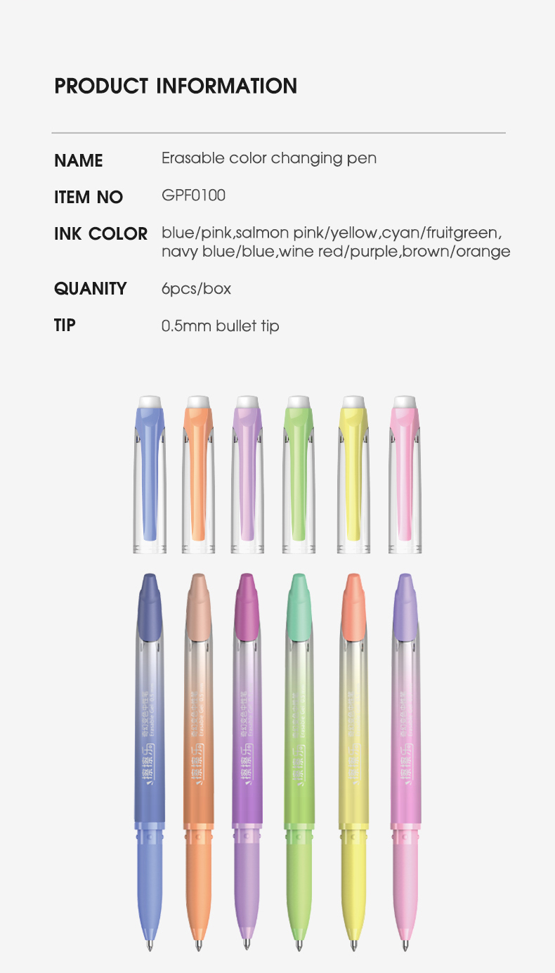 Ручка гелевая с чернилами меняющими цвет BEIFA GPF010001 0.5мм цветные чернила цветная коробка 6шт/упаковка