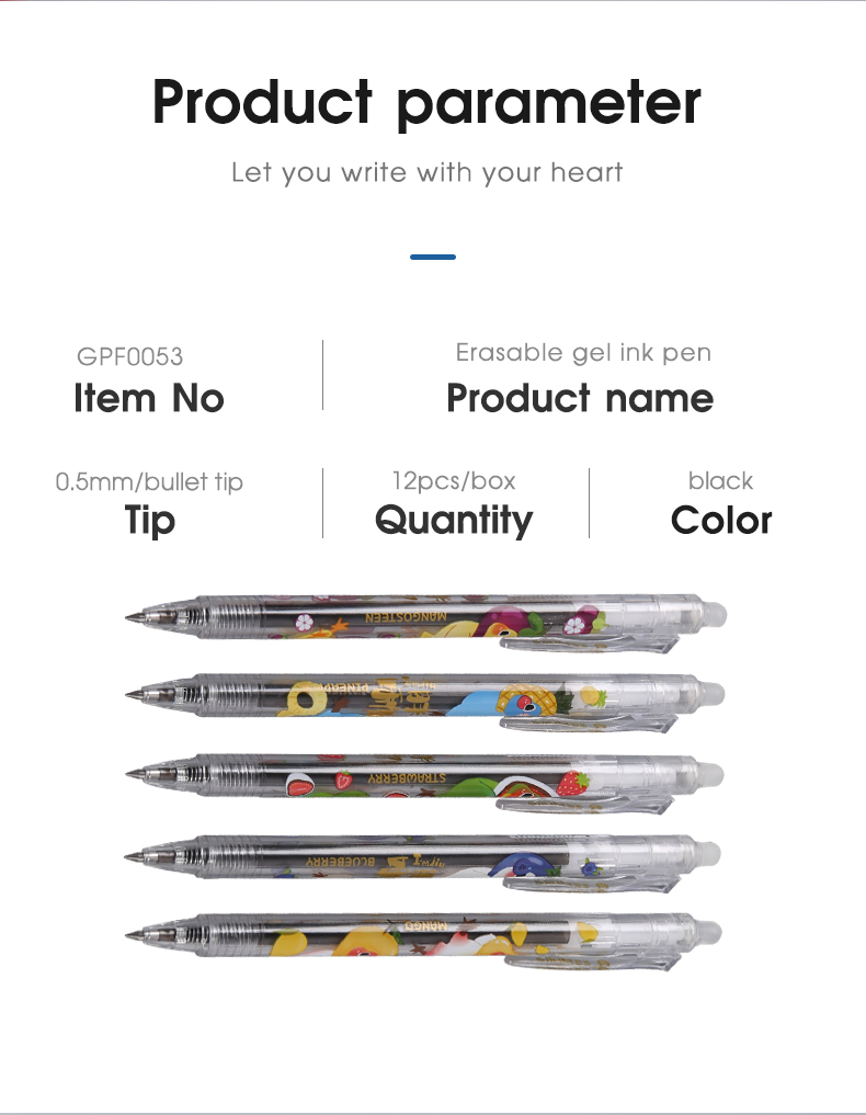 1. Ключевые спецификации: четкий почерк, легко стираться и не оставляются следы, встроенная ластика, качественные чернила