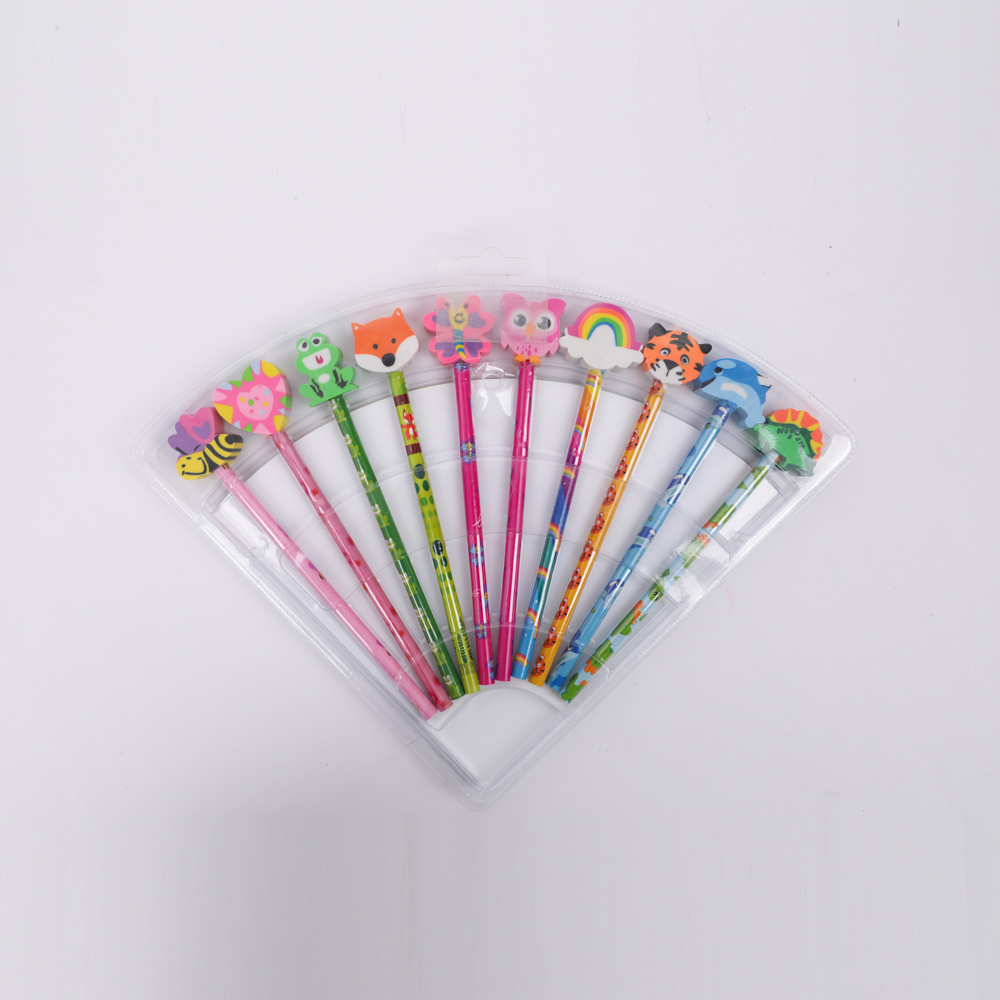 Набор чернографитных карандашей BEIFA BF0021 с фигурными ластиками 10шт/упа.