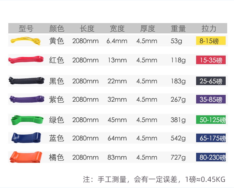Лента силовая для фитнеса BEIFA BFRB0001 2080*4.5*13мм от 6.8 до 15.8кг