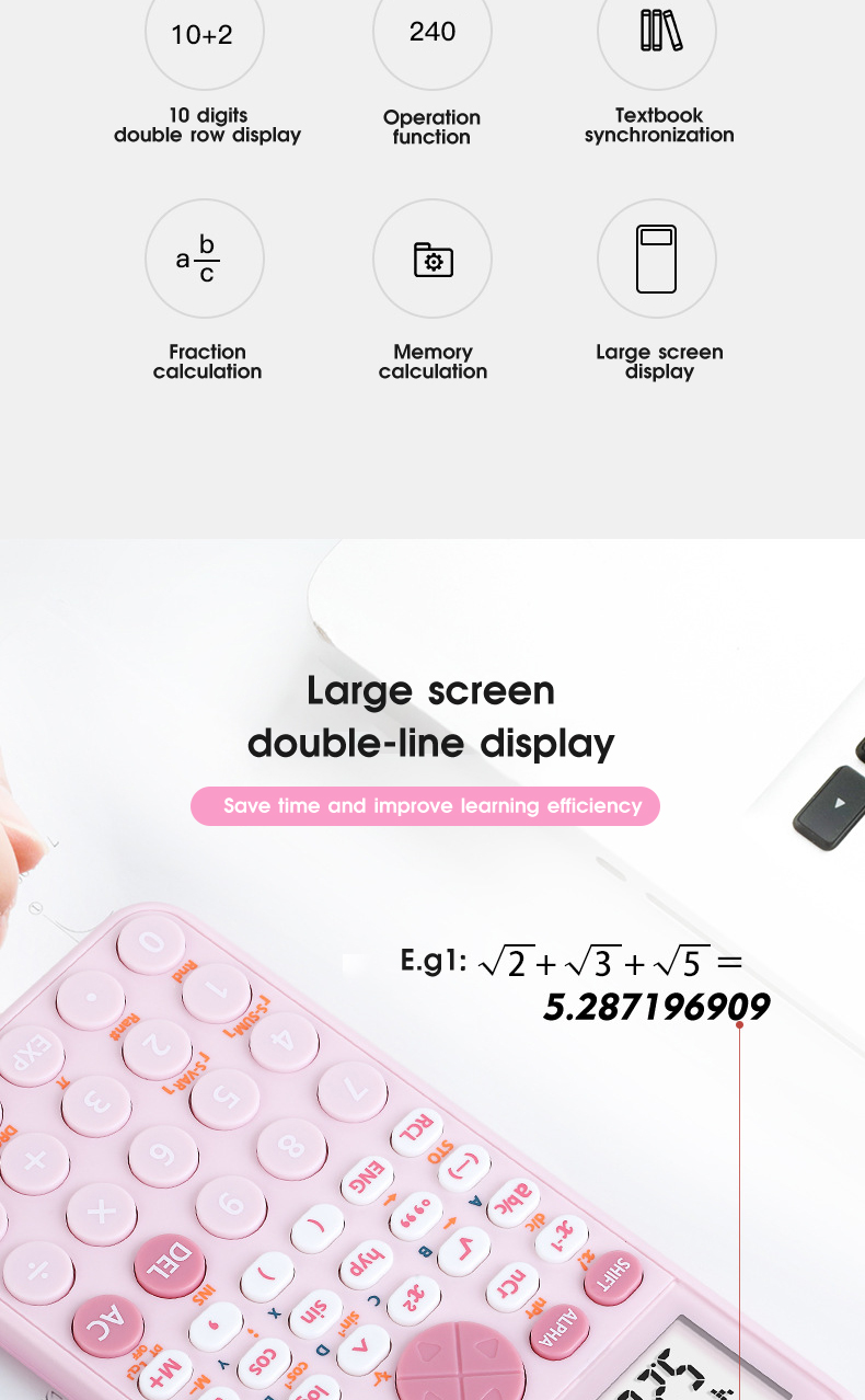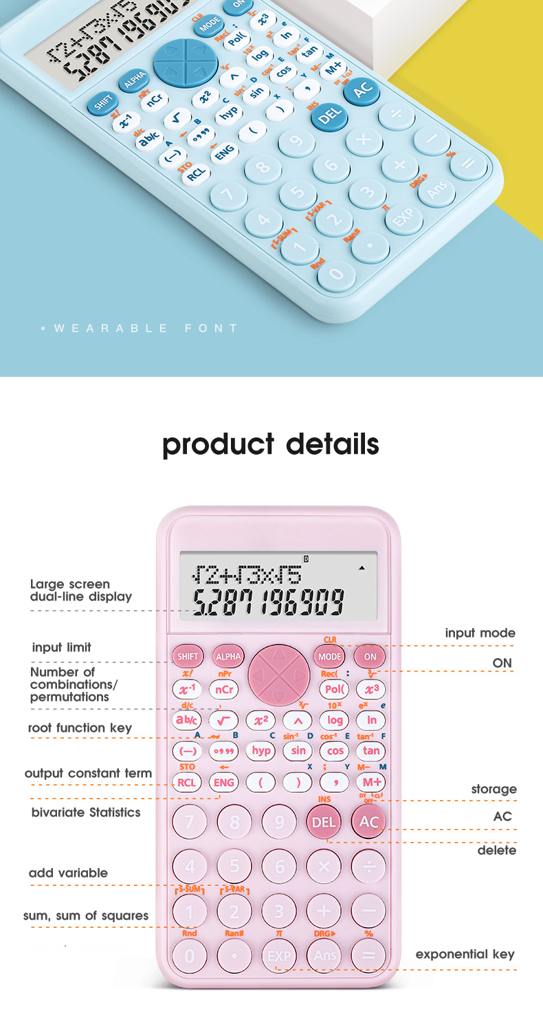 Научный калькулятор BEIFA BF2891 12-разрядный питание от батарейки 12.7*7.5*1.8см 240 функций ПЭТ коробка ассорти