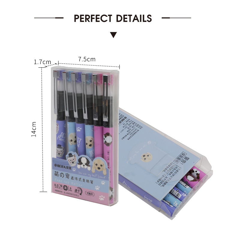 Набор ручек-роллеров BEIFA GAF0018001 0.5мм черные чернила ПЭТ коробка 6шт/упаковка