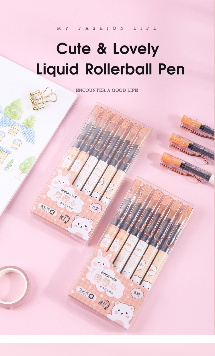 Набор ручек-роллеров BEIFA GAF0049004 0.5мм черные чернила ПЭТ коробка 6шт/упаковка